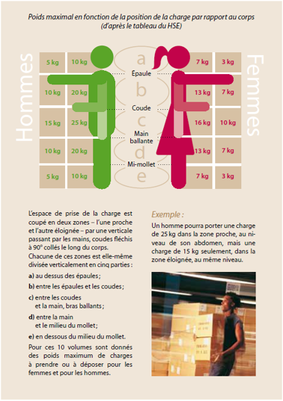 Poids maximal en fonction de la position de la charge par rapport au corps
